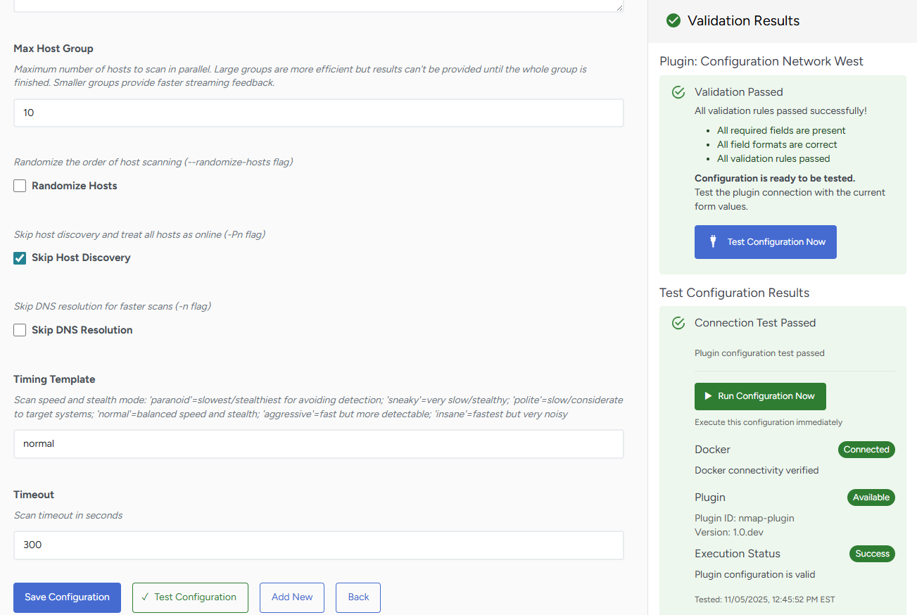 - Add New: Create additional configurations for the same plugin type to target different network segments or use different parameters.