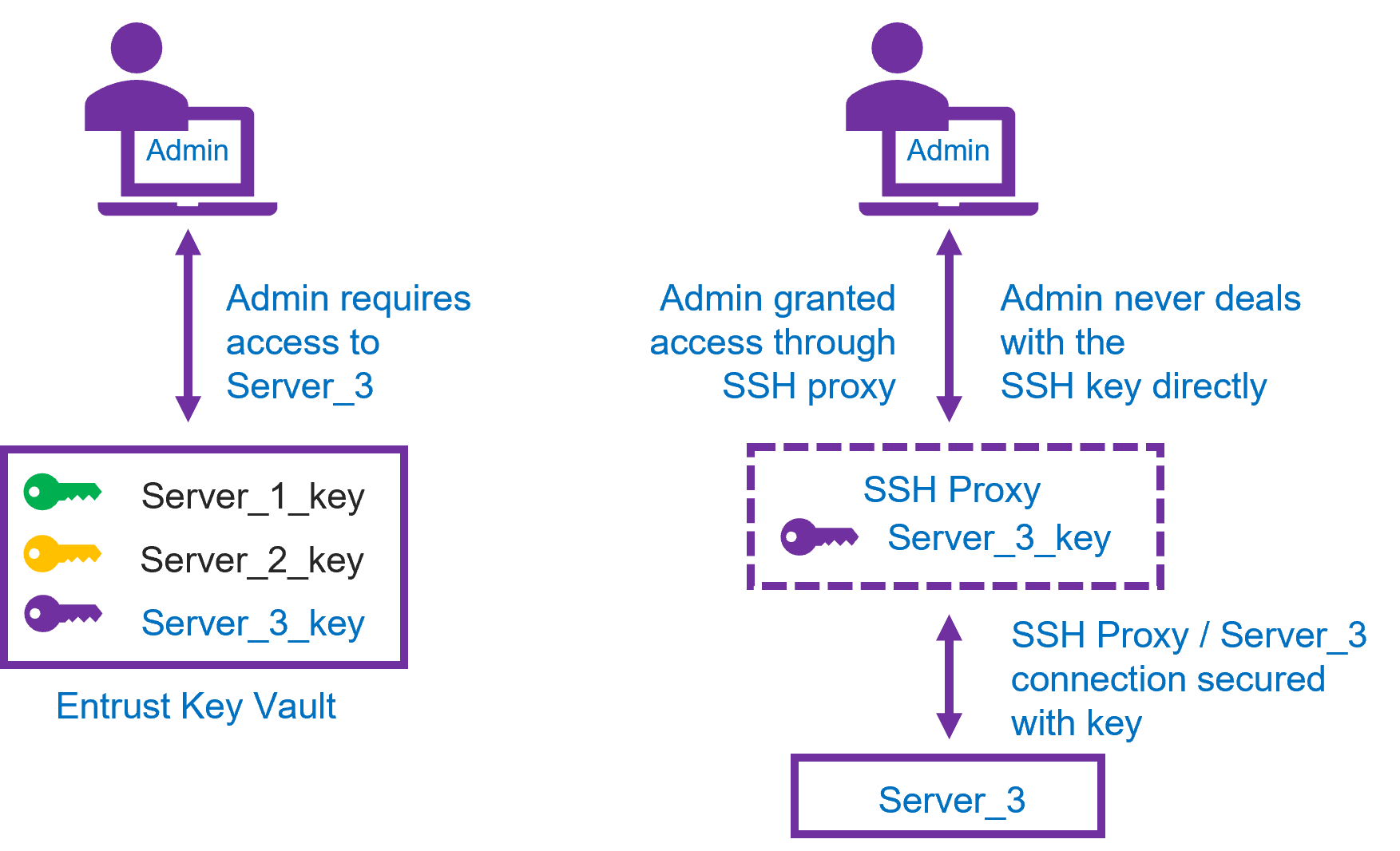 You can add Secure Shell (SSH) private keys as secrets to your Cryptographic Security Platform Vault for Secrets. This allows you to access a server via SSH using the secret.