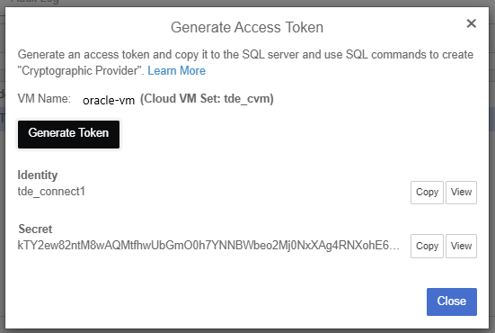 Copy the access token to the Oracle Server and create the Cryptographic Config file.