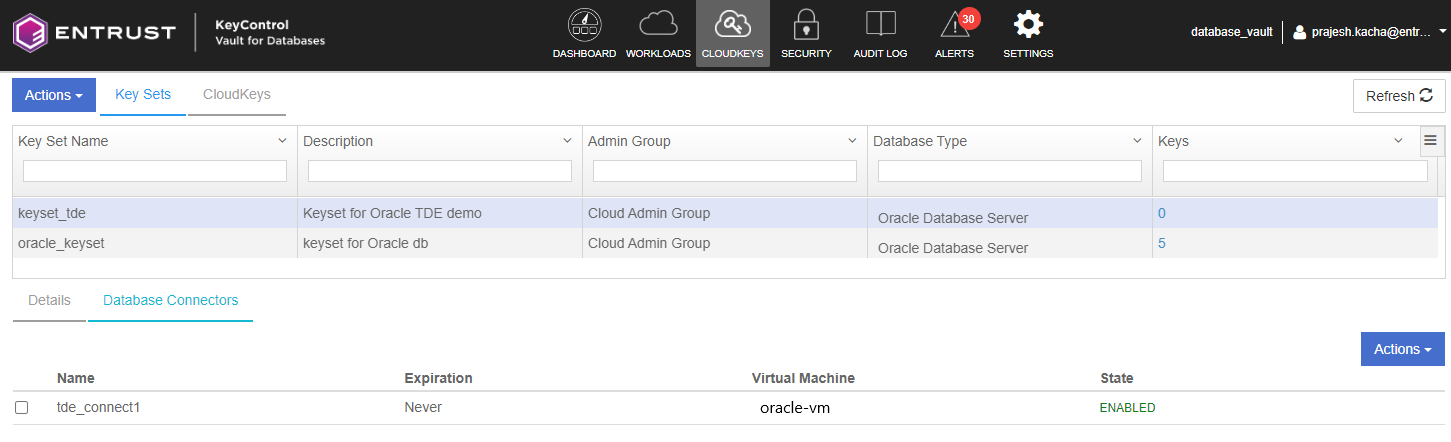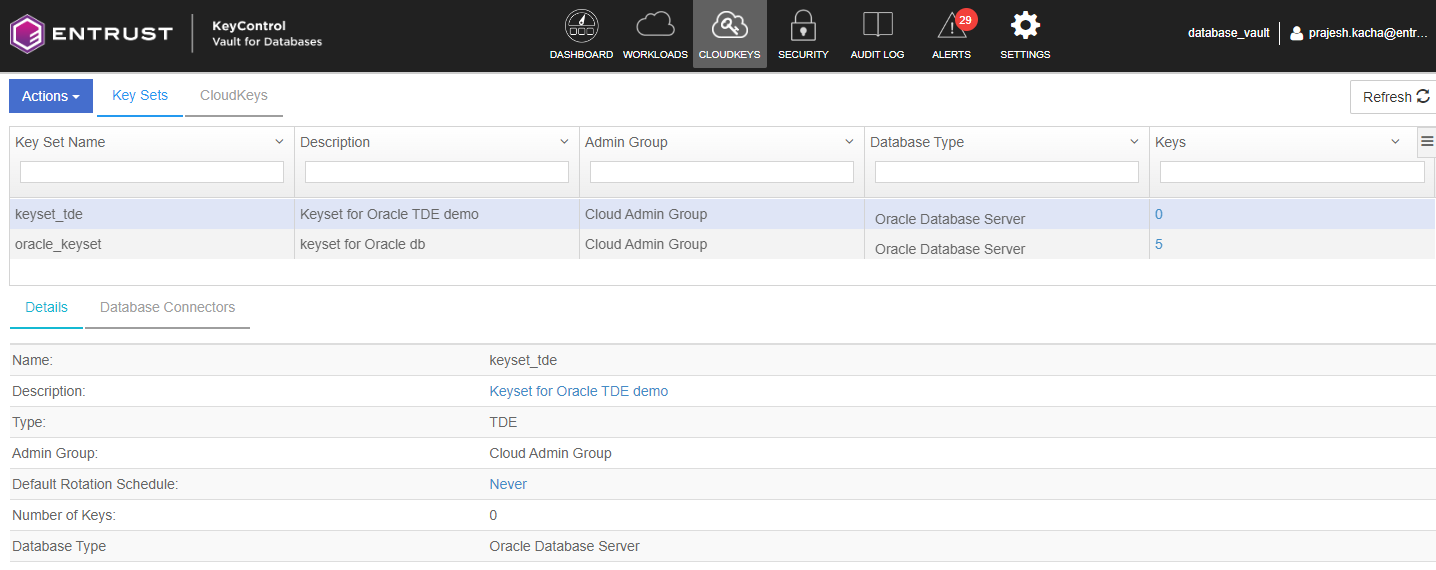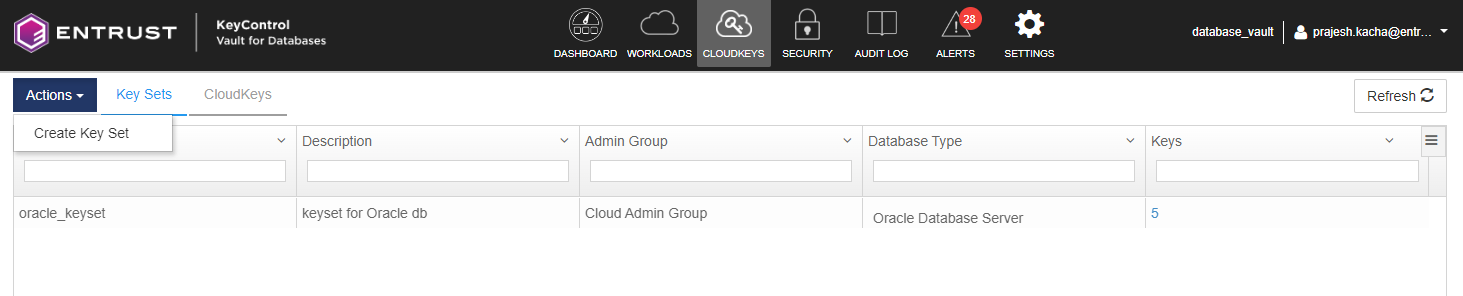 Navigate to CLOUD KEYS > KeySet tab.