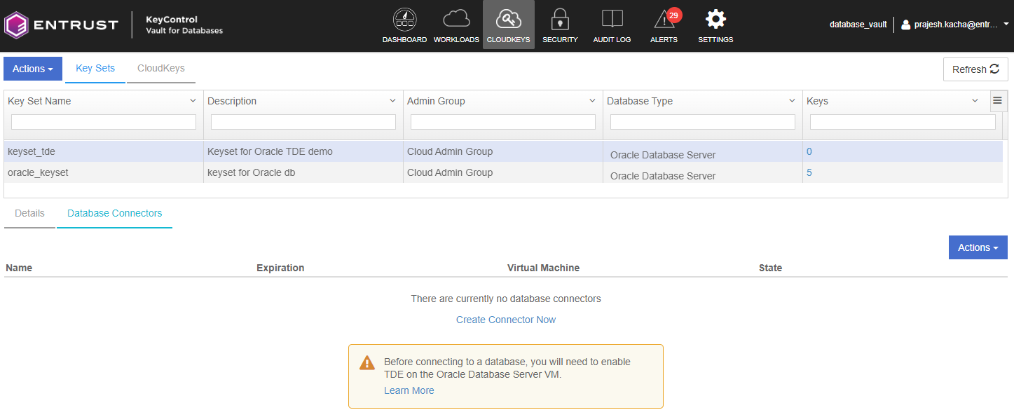 Navigate to the KeySet and select the Database Connectors tab. Select Create Connector Now.