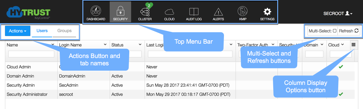 The main features of the KeyControl webGUI are: