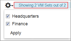 To limit the number of Cloud VM Sets displayed, click the gear icon underneath the Entrust logo and select the sets you want to view, then select Apply. The webGUI displays a message next to the gear icon indicating how many Cloud VM Sets you are viewing.