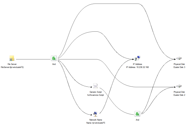 hcs-fs-service.vbsto the same location on both nodes winhost1 and winhost2. - Add the script as a resource to the FS service via the failover cluster manager.